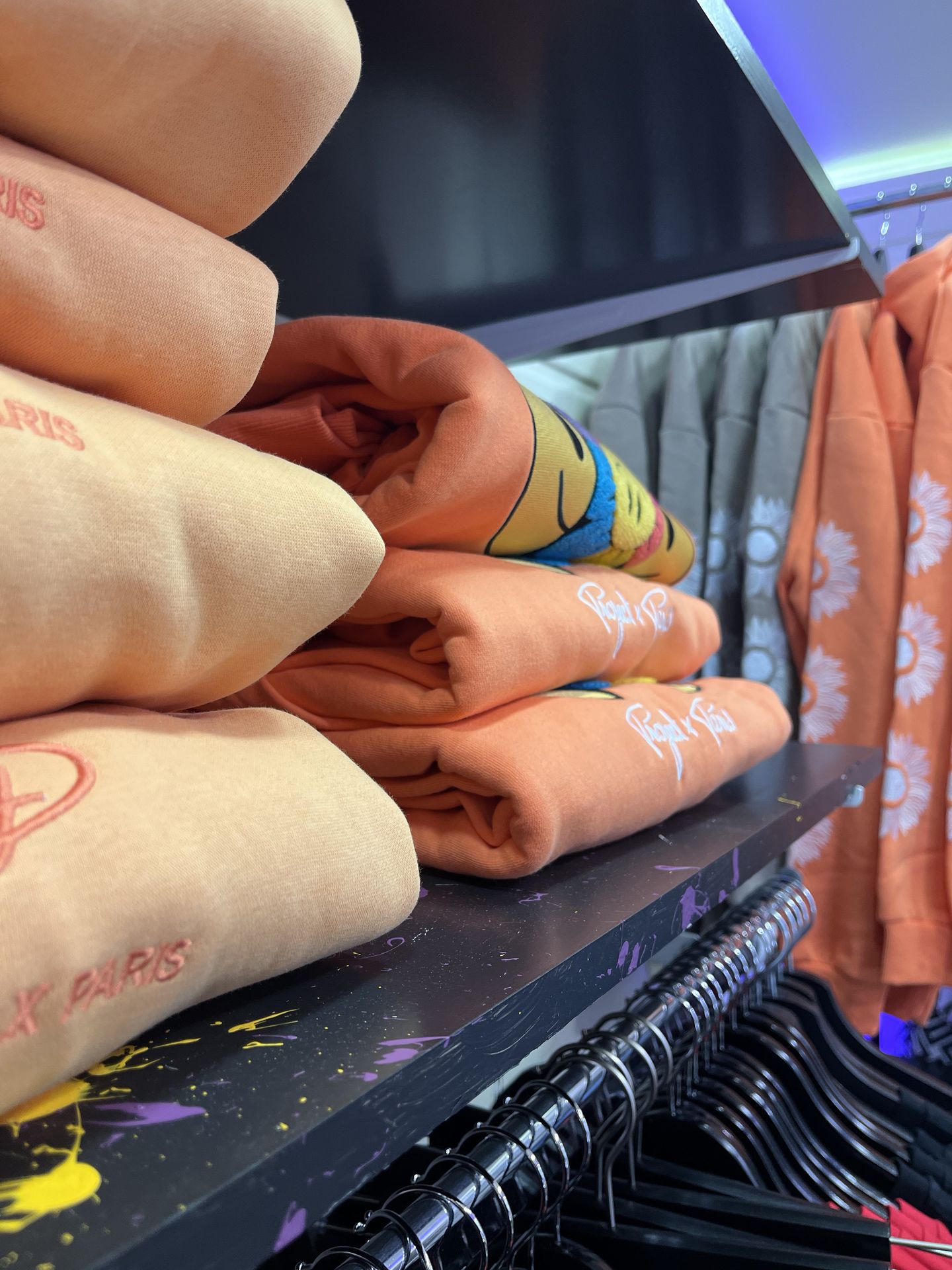 Des pièces streetwear qu’on porte nous-mêmes, pas juste des fringues sur des cintres. Des licences officielles (NFL, NBA, F1), Project X, Frilivin, New Era, et des marques qui débarquent en France comme Starter.